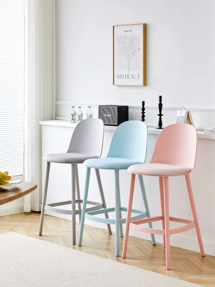 Scandinavian Minimalist Bar Stool – Modern High Counter Chair for Home, Designer's Choice for Milk Tea Shops, Stylish Plastic Bar Stool