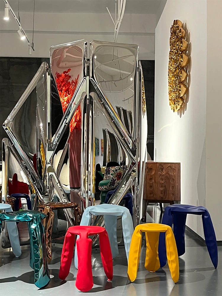 Liquid Leather Balloon Stool - Stainless Steel Backrest Metal Chair, Scandinavian Designer Luxury Colorful Accent Stool for Modern Living Spaces