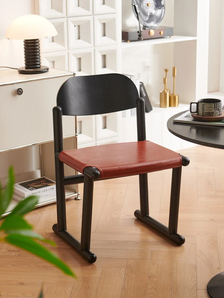 Vintage Inspired Solid Wood Dining Chair for Small Spaces - Minimalist Design Leisure Chair with Backrest and Leather Finish - Perfect for Home Dining Decor