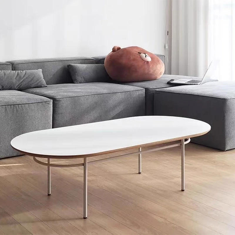 北欧風レトロエレガントな楕円形コーヒーテーブル - モダンでシンプル、ステンレススチールと天然木を使用した、狭いリビングにもぴったりのスタイリッシュなティーテーブル!