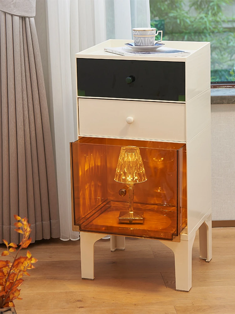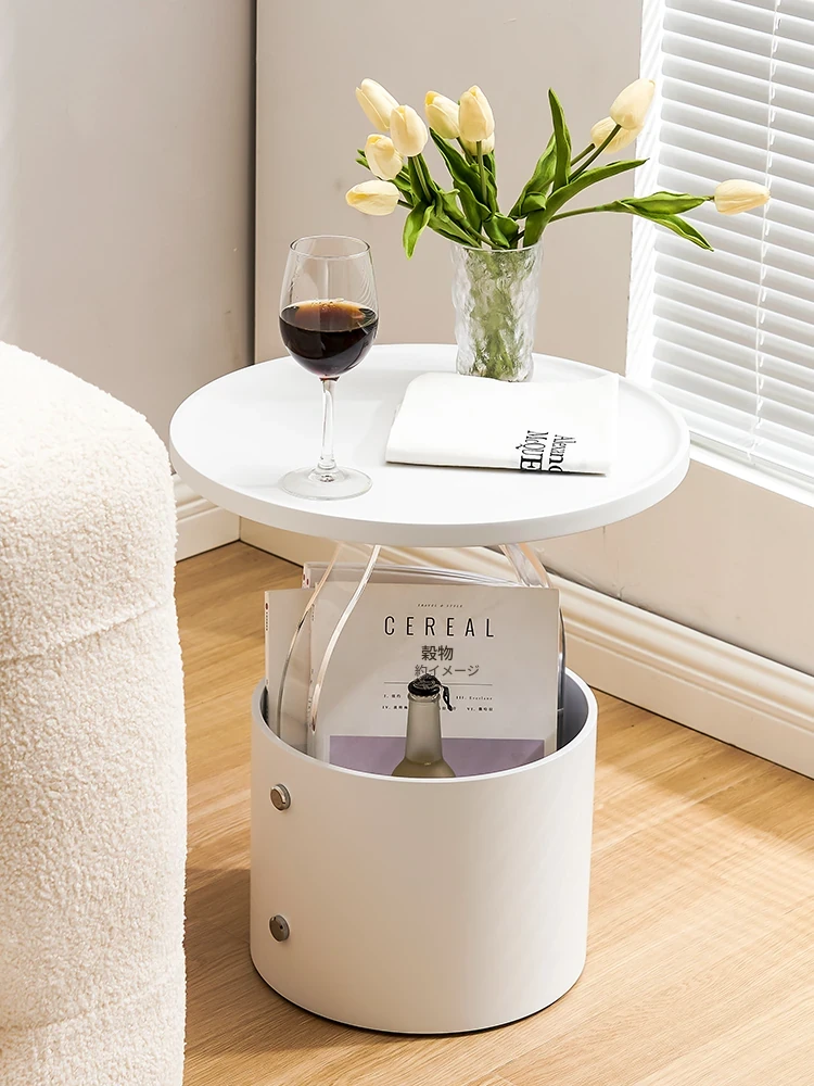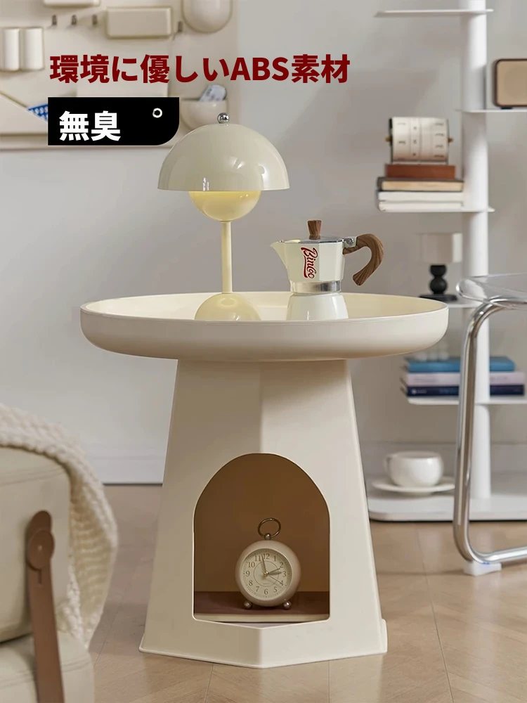 クリーム風のインスタ映えソファサイドテーブル|収納力抜群!軽やかなラグジュアリー感溢れるリビングにぴったりなアイデアあふれる侘び寂びスタイルのベッドサイドテーブル/小さなティーテーブル