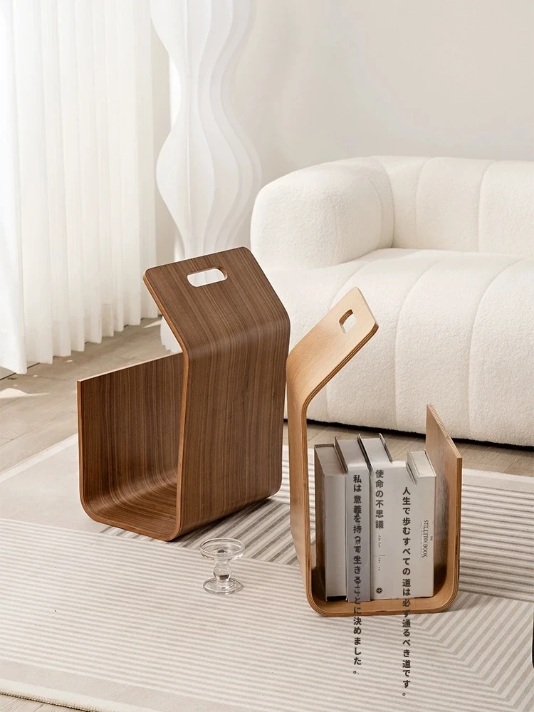 北欧スタイルの無垢材サイドテーブル - デザイナーズ雑誌ラック付き、コンパクトでシンプルなデザイン!リビング、ベッドサイド、バルコニーにぴったりの小型テーブルです。おしゃれなインテリアを演出し、機能性も兼ね備えています!