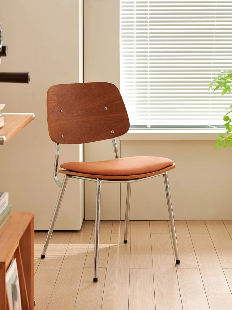 Kanai Chair: Nordic Retro Luxury - Minimalist Solid Wood Backrest Chair for Small Spaces, Featuring Sleek Stainless Steel Accents. Perfect for Modern Home Décor!