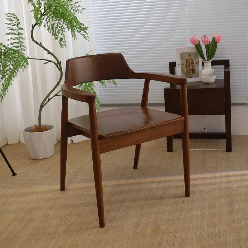 Hot-selling Walnut Wood Dining Chair - Scandinavian Style with Armrests, Perfect for Living Room and Restaurant, Solid Wood Construction, Stylish Black Walnut Accent, Comfortable Backrest, Ideal for Casual Dining and Reading.