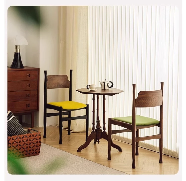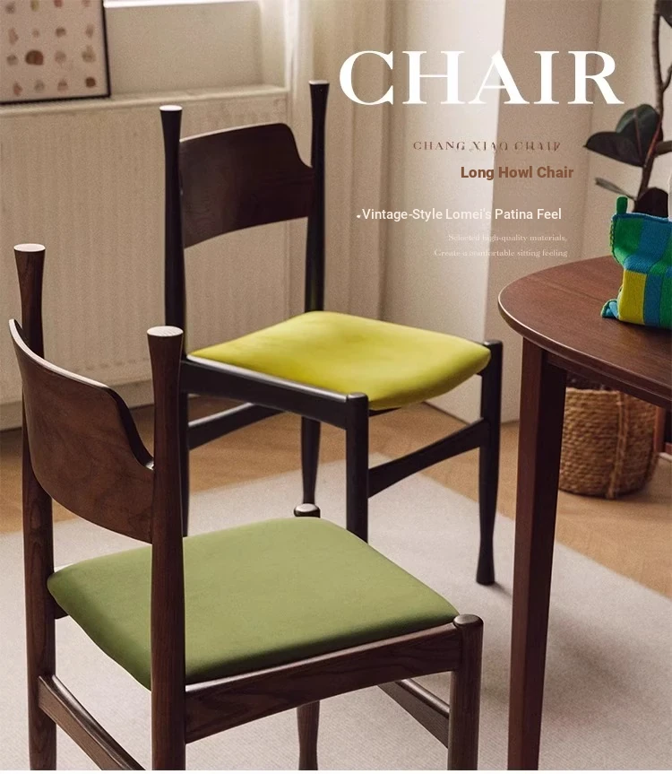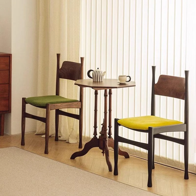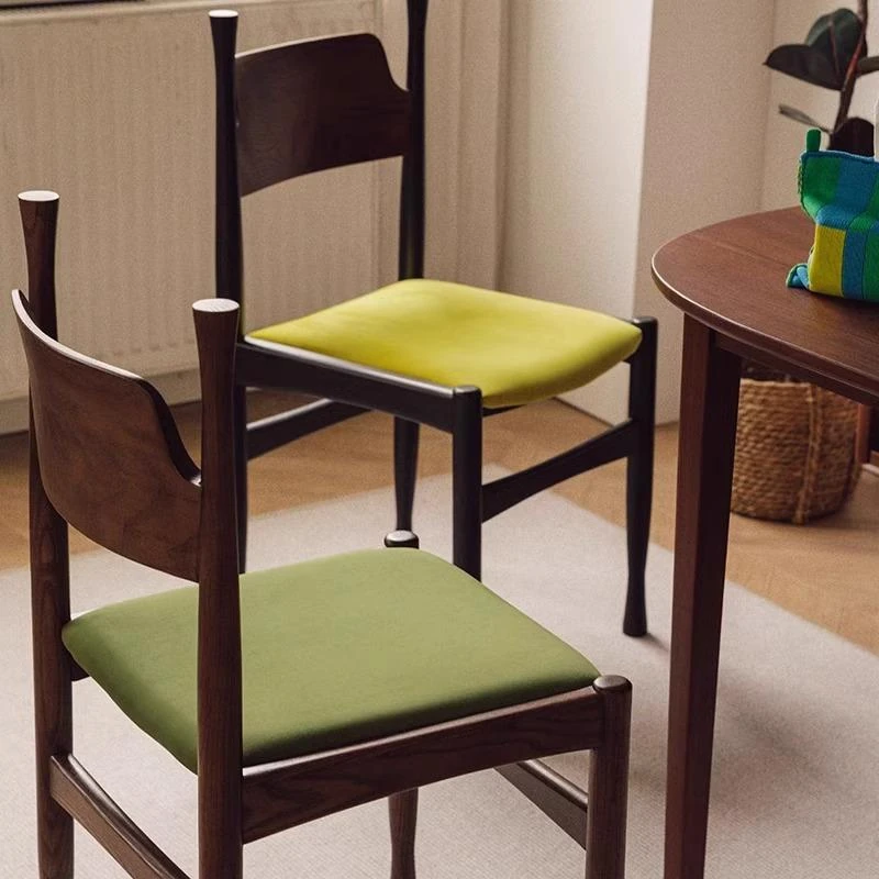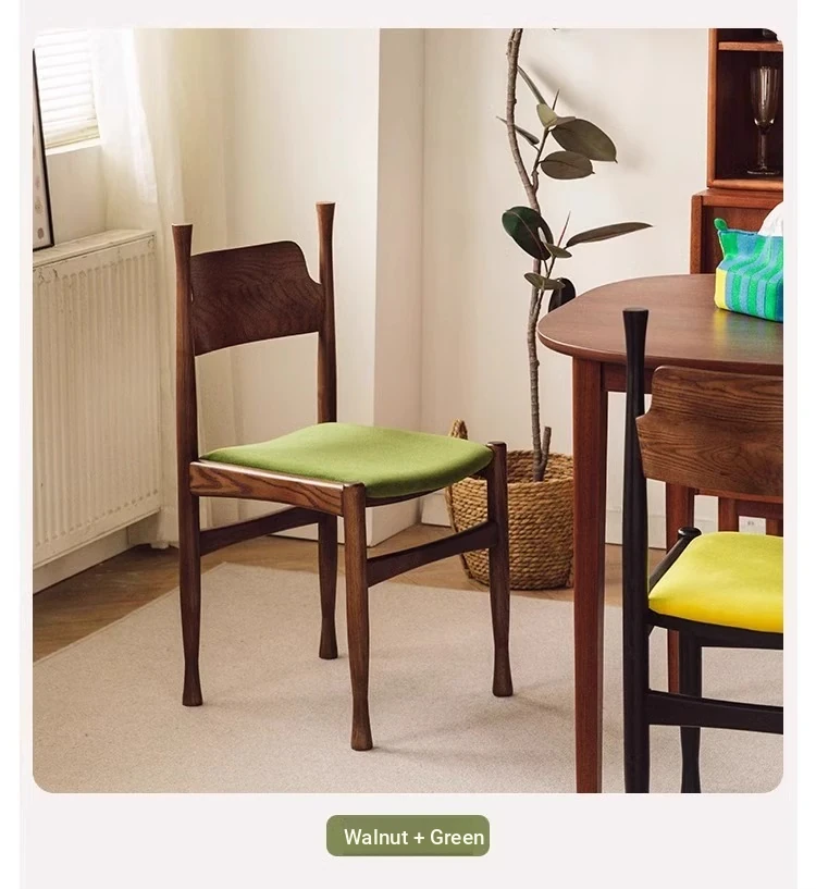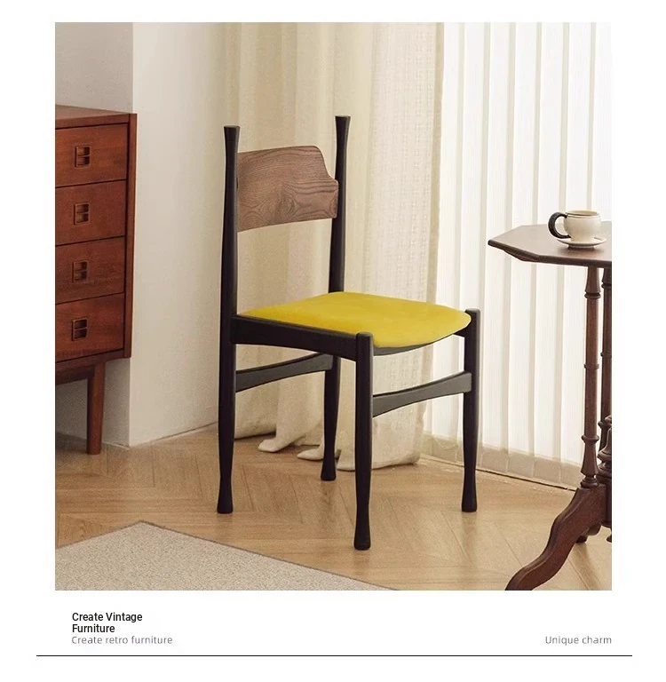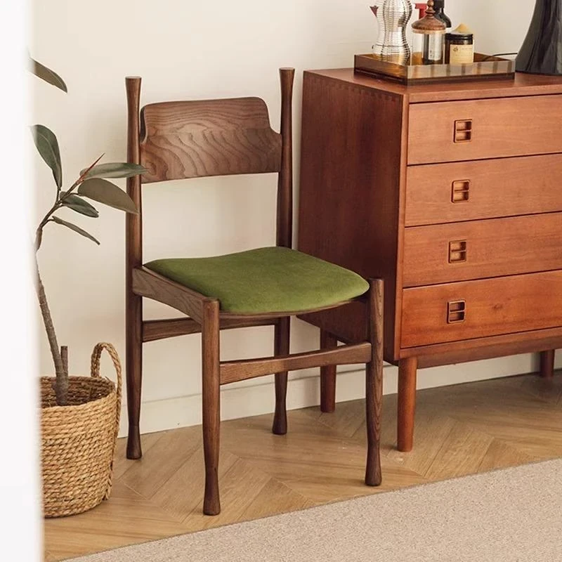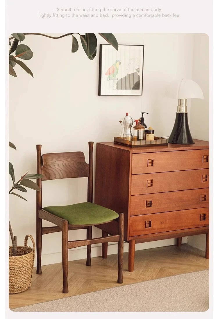 Nordic Vintage Solid Wood Dining Chair - French Retro Elegant Designer Dining Stool with Soft Upholstered Backrest for Home Use