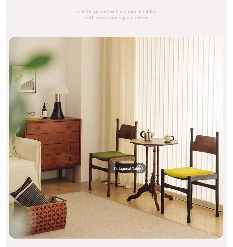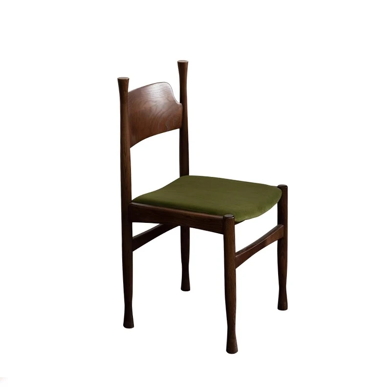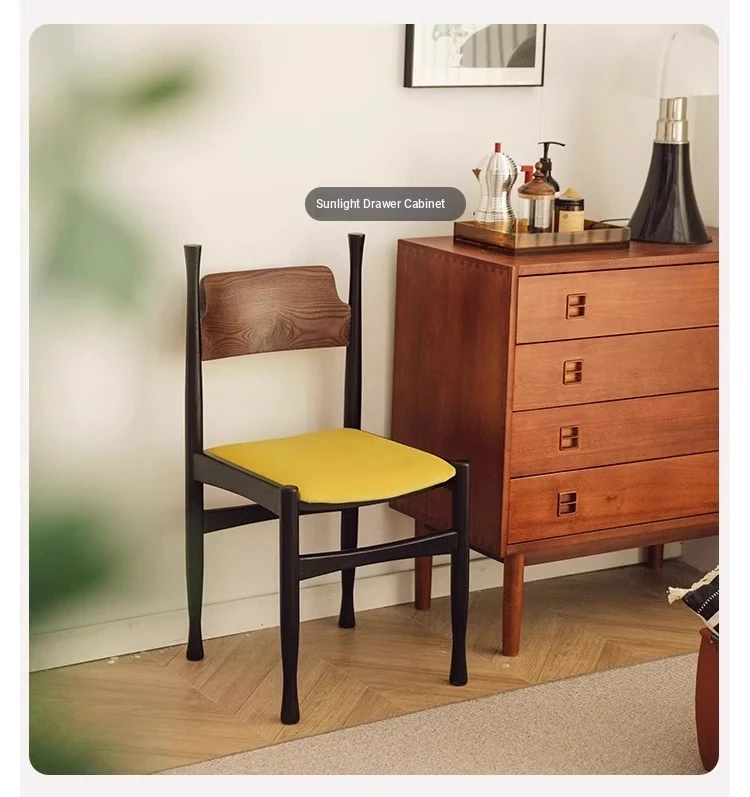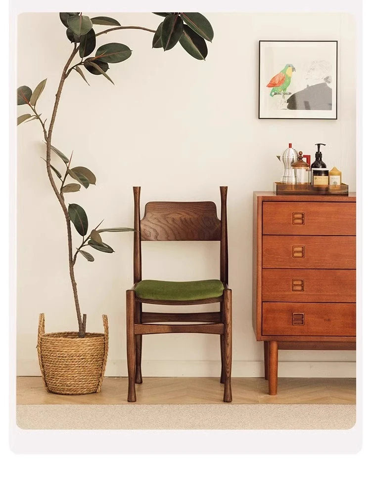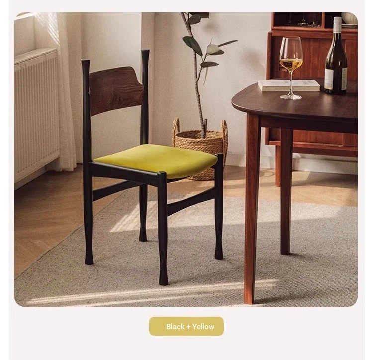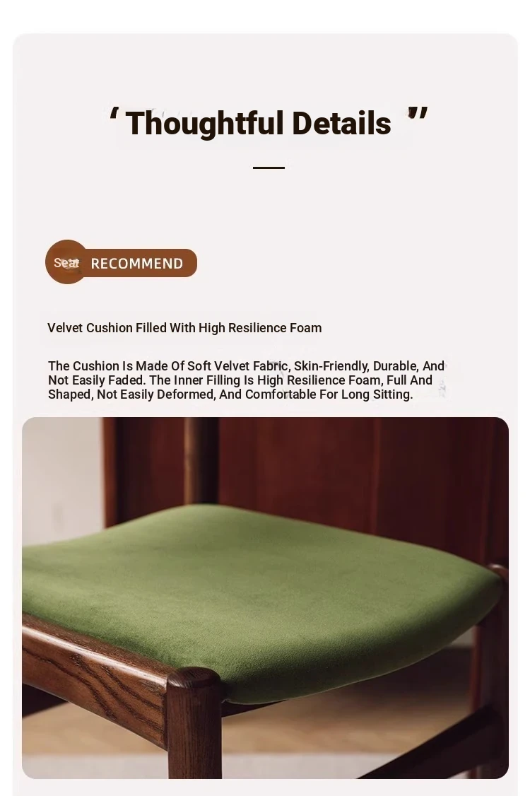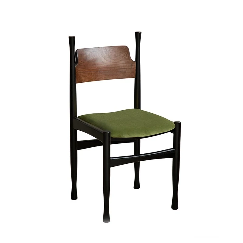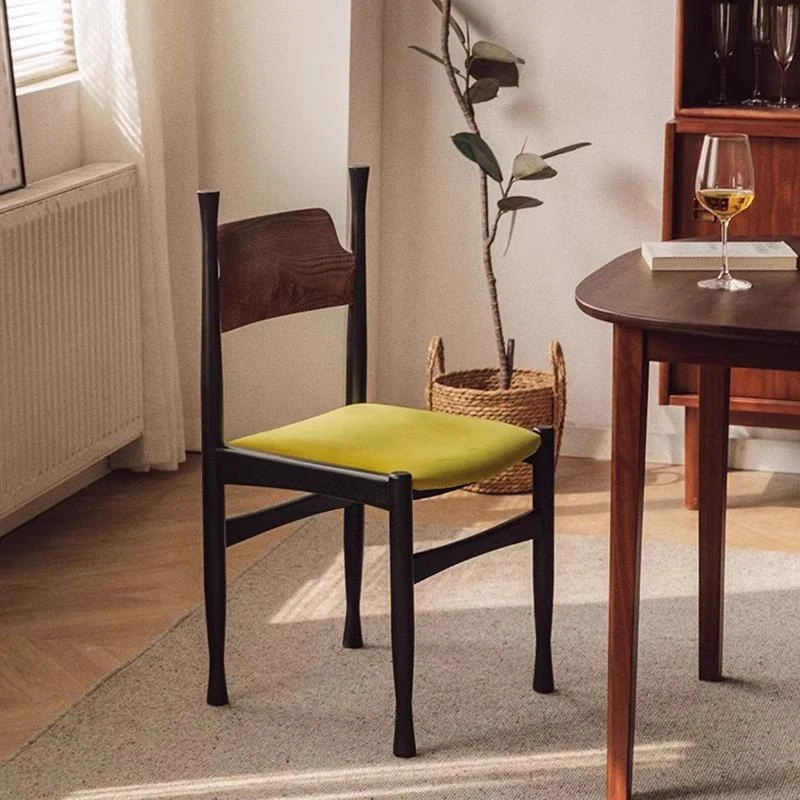 Nordic Vintage Solid Wood Dining Chair - French Retro Elegant Designer Dining Stool with Soft Upholstered Backrest for Home Use