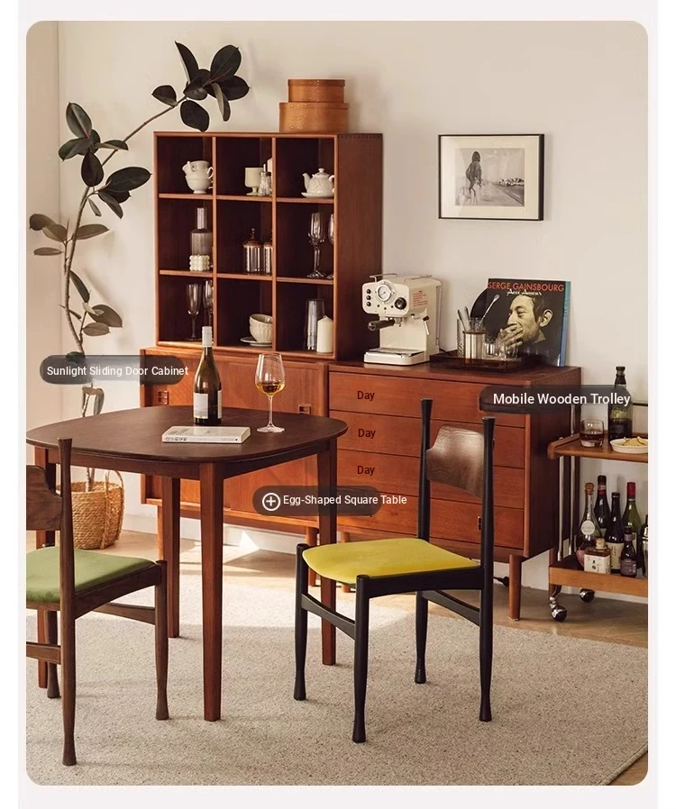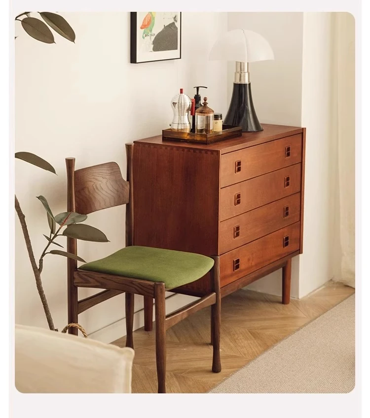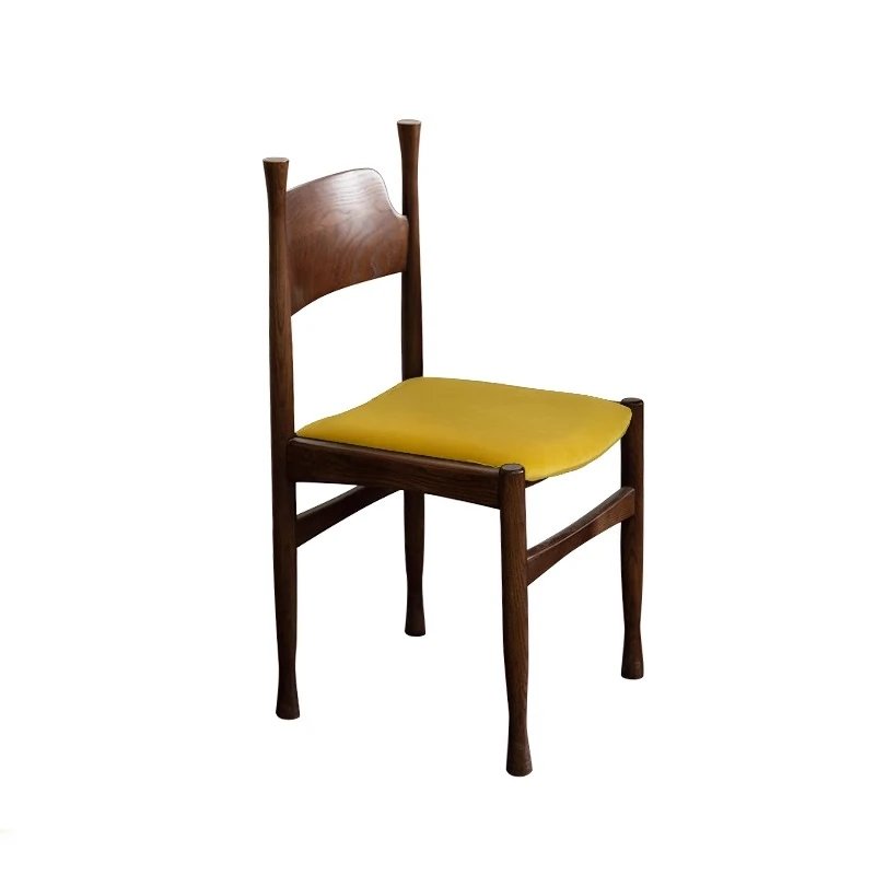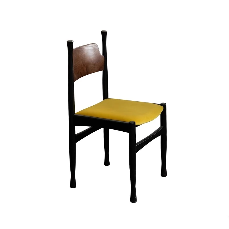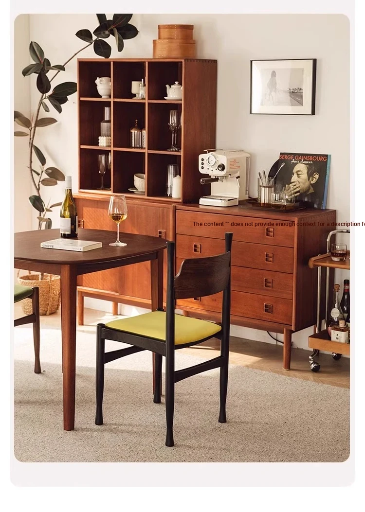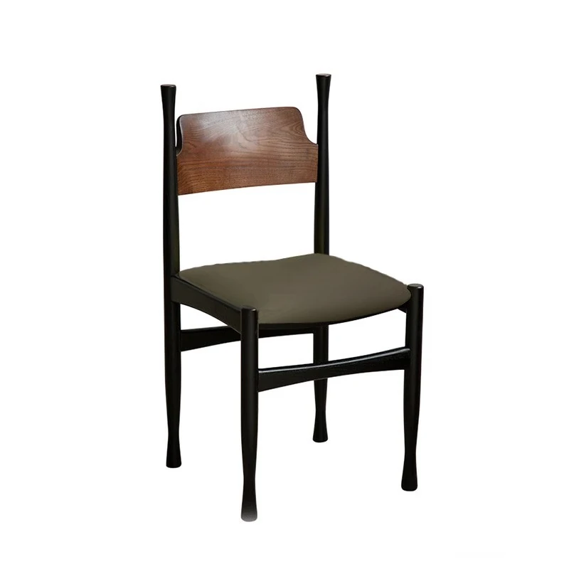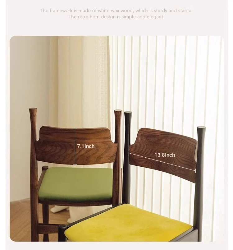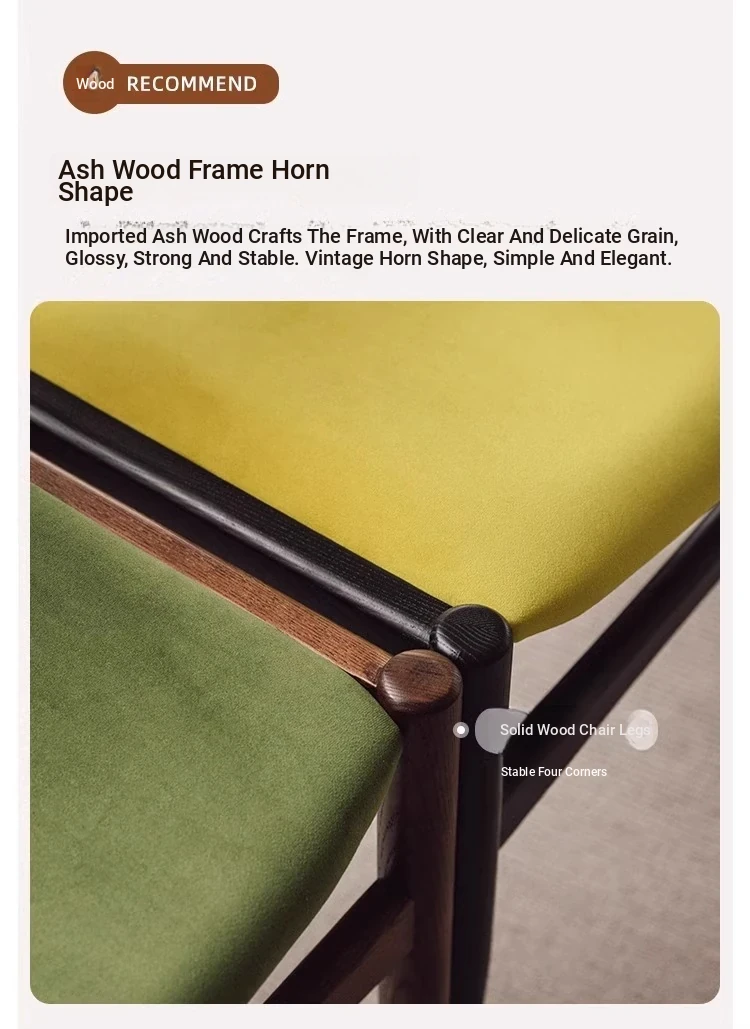 Nordic Vintage Solid Wood Dining Chair - French Retro Elegant Designer Dining Stool with Soft Upholstered Backrest for Home Use