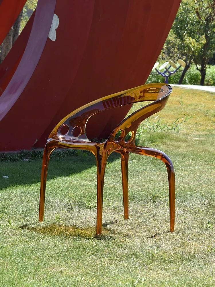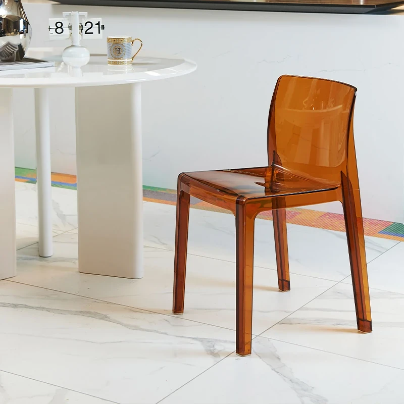 北欧風デザインのクリアアクリルチェア - シンプルでスタイリッシュ、家庭にぴったりの軽奢なプラスチック製ダイニングチェア。人気のインテリアとして、心地よい背もたれでリラックスした食事を!