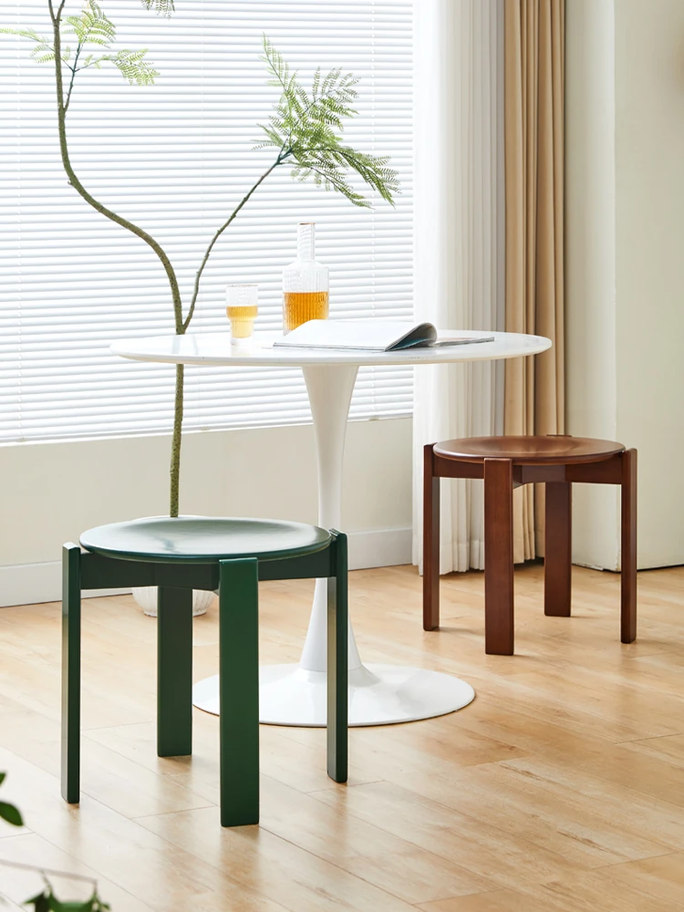 デザイナー仕様のカラフルで可愛い円形チェア - 滑らかなシンプルさ、会議や小さな空間にぴったりな背もたれ付きの無垢材製ダイニングチェア。あなたのインテリアを一新する魅力的なアイテムです!